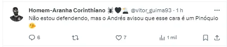 “É um jogador com pouco tempo no profissional, gostaria que ele permanecesse muito mais, sempre disse na campanha que (venda de) atletas formados em casa seria nossa terceira receita, estamos trabalhando para elas sejam pontuais e não de atletas. Mas infelizmente chegou (ao fim) o ciclo, a cabeça dele também já está fora, demos liberdade para ele escolher, que seja feliz. Está caminhando pra isso” disse à Rádio Bandeirantes.