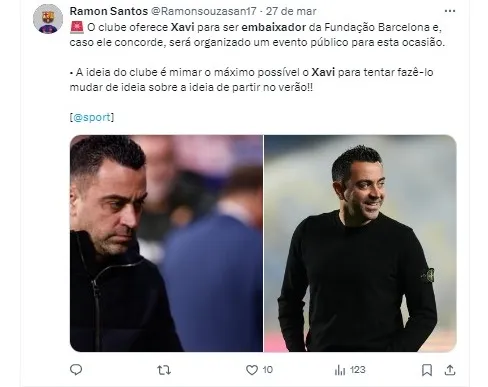Essa proposta estaria sendo avaliada como uma forma de manter Xavi vinculado ao Barcelona, especialmente considerando a sua possível saída do cargo de treinador.