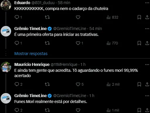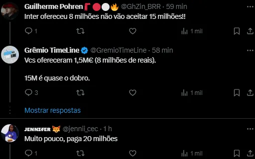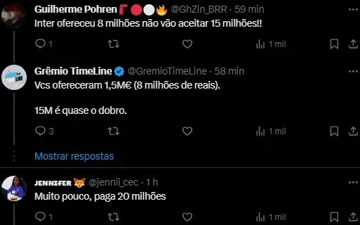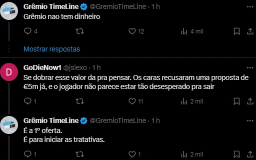 “Marlon tem o aval de Renato para Libertadores de 2024. Estima-se que a oferta será na casa dos US$ 3 milhões (15 milhões) pelo passe do defensor”, acrescenta a atualização do Grêmio hoje.