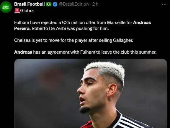 Depois de duas temporadas sob o comando do técnico Marco Silva, Andreas tem acordo para deixar o Fulham e partir para um novo desafio na carreira. Chelsea, Olympique Marseille e clubes da Arábia Saudita monitoram.