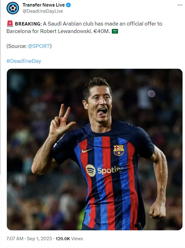 Entretanto, com o futebol saudita sendo um dos que mais gastaram nesta janela de transferências, Lewandowski teria recebido uma proposta de 40 milhões de euros (R$ 211 milhões), conforme informa o jornal Sport.