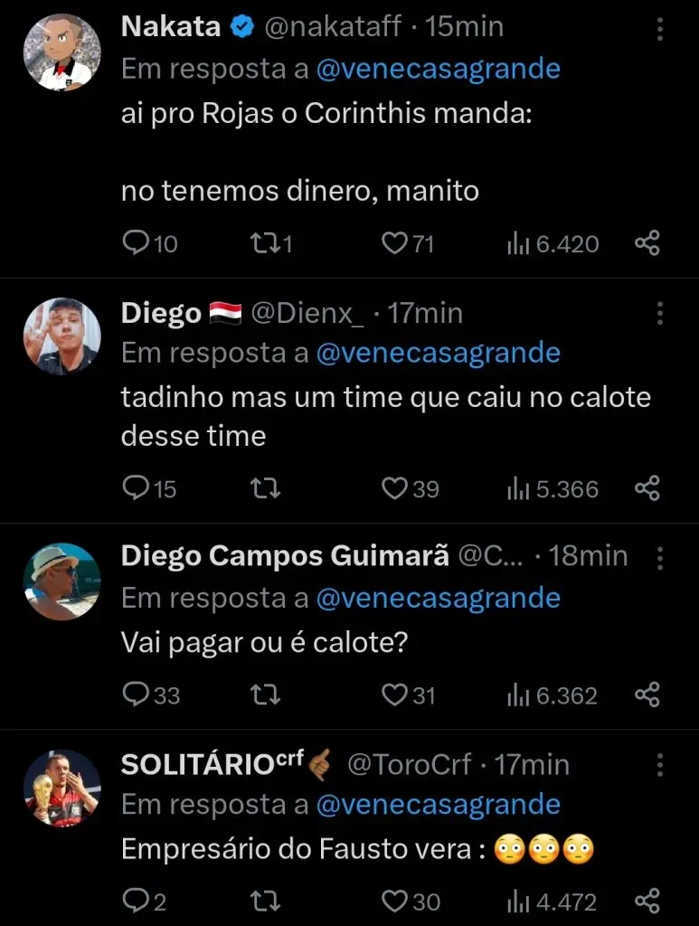 Rojas acionou o SCCP para receber os R$ 5 milhões em direitos de imagem que ainda estão em débito, além de negócios estarem sendo expostos por falta de pagamento pela parte corinthiana.