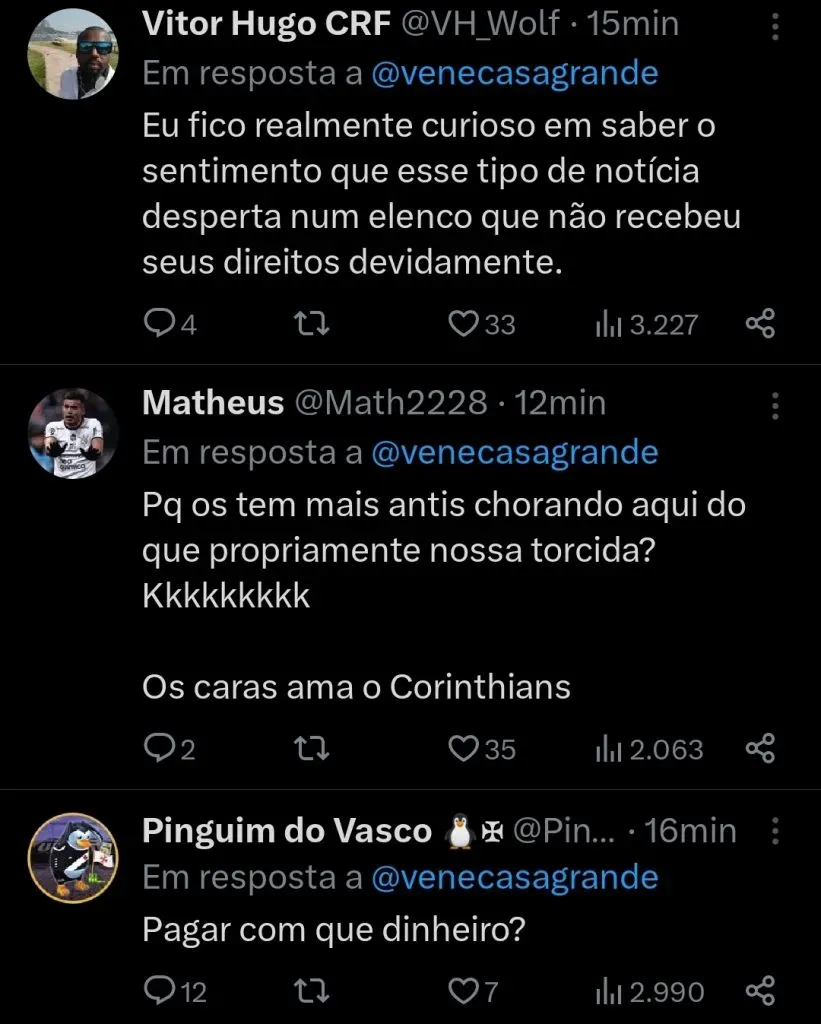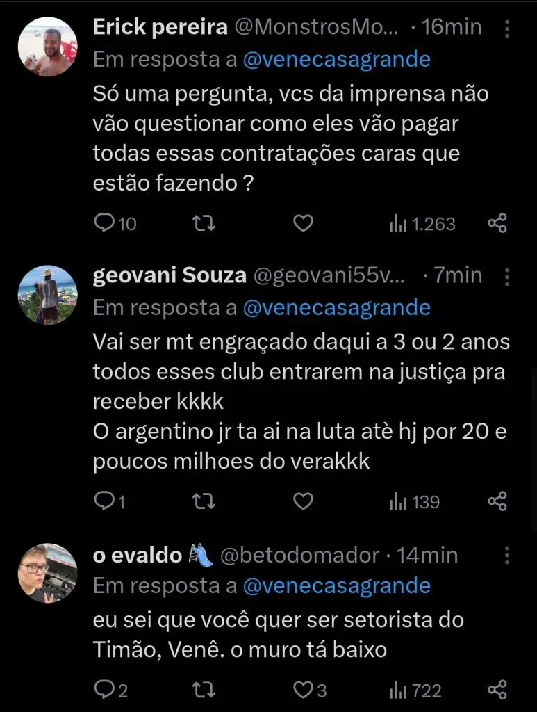 ” Corinthians finaliza detalhes burocráticos para poder anunciar o jogador. Félix Torres disputou a Copa do Mundo de 2022 e é titular na Seleção do Equador”, finaliza Venê Casagrande.