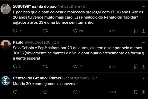 Gustavo está avaliado pelo Copeiro em 80 milhões de euros (em torno de R$ 429 milhões na cotação atual). A quantia está fixada no contrato da joia gremista.