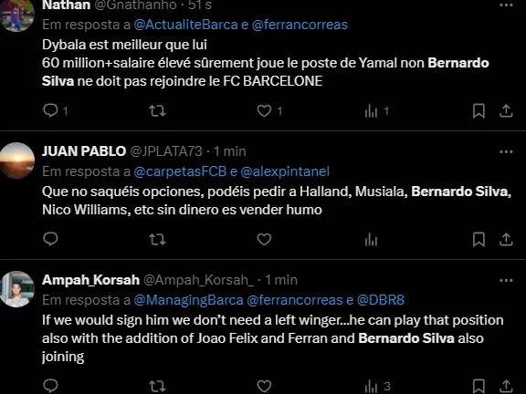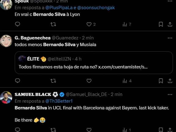 O clube de Manchester considera negociar B. Silva por valores em torno de 80 milhões de euros (R$ 437 milhões na cotação atual). A validade do contrato dele é até junho de 2026.