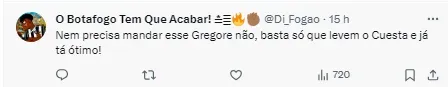 O time carioca fez uma proposta a Gregore, volante que atua no Inter Miami, dos EUA, envolvendo o zagueiro Victor Cuesta na transação, segundo o jornalista Andre Hernan que publicou a notícia. O Botafogo ofereceu 1,5 milhão de dólares (cerca de R$ 7,2 milhões) mais o zagueiro em troca. A equipe carioca considera que o valor do zagueiro também é de 1,5 milhão de dólares, totalizando 3 milhões em “cifras reais”.
