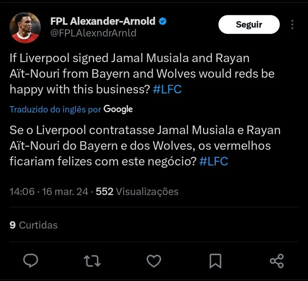 A diretoria do clube de Munique não é contra uma negociação do jogador, mas pede um valor mínimo de €100 milhões pela sua venda. O Liverpool analisa a situação e pode iniciar as conversas pelo meia de 21 anos em breve.