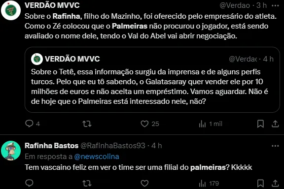 No entanto, o Verdão é quem avança em conversas preliminares para poder contar com o camisa 10 a partir de julho, assim que a janela de transferências abrir.