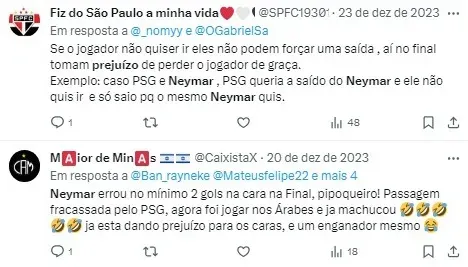 Neymar, atualmente se recuperando de uma lesão no joelho esquerdo, aparece na terceira posição da lista, causando um prejuízo de 122 milhões de euros (R$ 651 milhões) ao PSG. O atacante do Al Hilal empata com Ousmane Dembélé, que também gerou um déficit financeiro de 122 milhões de euros ao Barcelona.