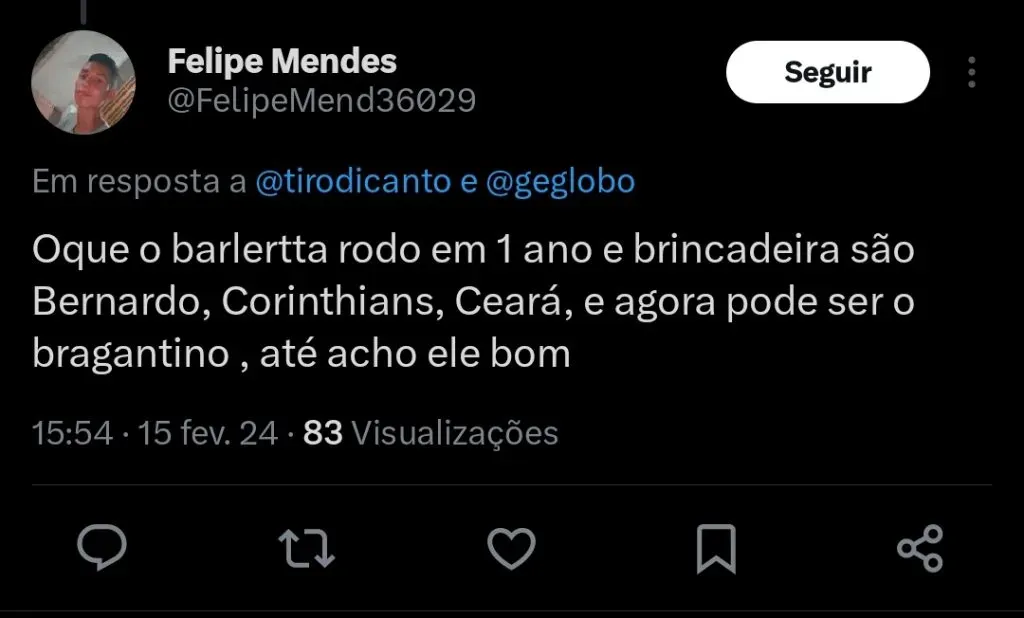 O jornalista Horácio Neto informa que o RB Bragantino encaminhou a contratação do meio-campista Christian Barletta, do Ceará.