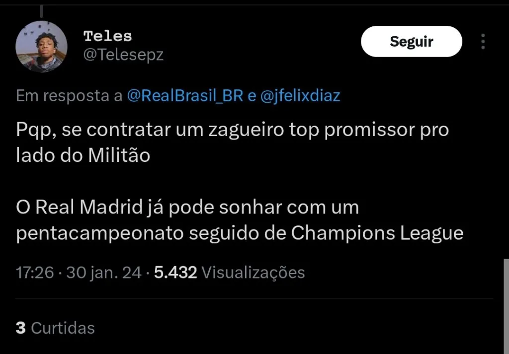 O jornalista José Félix Diaz reporta que o Real Madrid tem grande interesse na contratação dos laterais Yan Couto e Alphonso Davies.