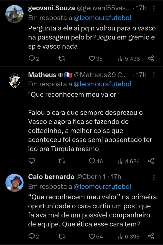 “Difícil, porque na minha mente eu iria jogar no Vasco. Com o Paulo (Bracks) estava tudo certo. Vida que segue. De tudo não será ruim”, completou Souza antes de finalizar sobre como se sente.