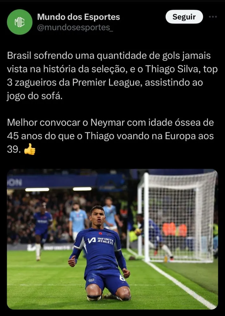 Além disso, Thiago Silva tem filhos jogando na base do Chelsea atualmente, e o portal afirma que os dois não teriam interesse em voltar ao Brasil no atual momento.
