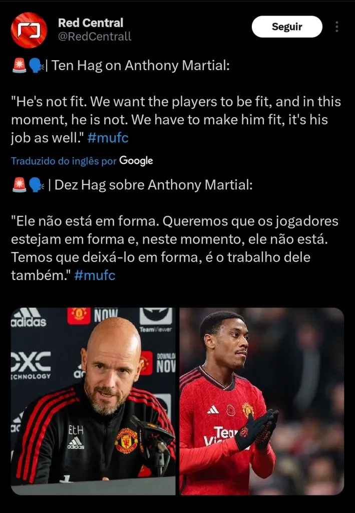 De acordo com informações divulgadas pelo portal Caught Offside, o West Ham quer acertar a contratação de Martial.
