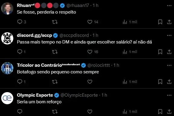 Para parte dos internautas, é o momento do xerife ex-Flamengo e São Paulo aceite algo por produtividade e assim volte a gerar confiança em torno do próprio desempenho.