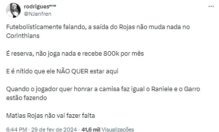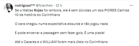 Rojas foi contratado no meio do ano passado com status badalado, mas sofreu com lesões e só esteve em campo 32% do tempo na última temporada, segundo o GE. Já neste ano, atuou somente em dez dos 11 jogos, sendo quatro como titular e soma três assistências em 30 partidas disputadas pelo clube.