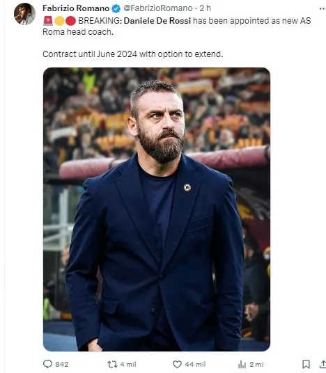 O anúncio oficial, divulgado no site da equipe italiana, chamou a atenção de muitos, pois De Rossi possui pouquíssima experiência como treinador. Seu histórico recente na SPAL, entre 2022 e 2023, foi marcado por um desempenho abaixo do esperado, com apenas 17,65% de aproveitamento em 17 partidas.