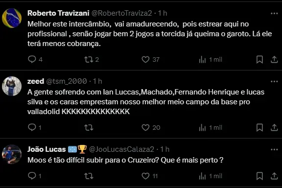 Não é a primeira vez que jovens do Cruzeiro farão intercâmbio fora do país. Recentemente, Fernando Seabra junto a Rhuan Gabriel e Ruan Índio tiveram um período de experiência no PSV.