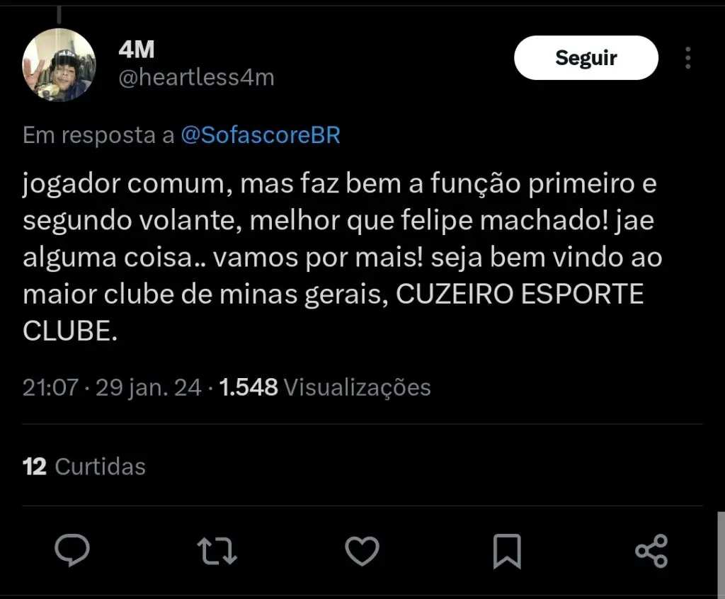 A negociação está em estágio muito avançado, e deve ser concluída já nos próximos dias. Até o momento, não foram divulgado os valores oferecidos pelo Cruzeiro para acertar a contratação do meio-campista.