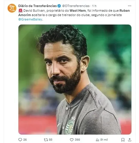 Segundo fontes do jornal inglês ‘The Athletic’, o West Ham considera Amorim como sua principal opção para a próxima temporada, diante da possível saída de seu atual treinador, David Moyes.