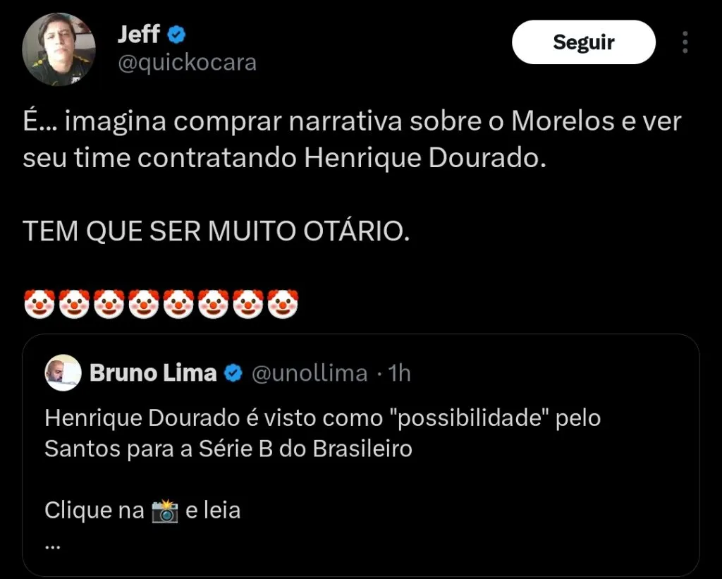 O jornalista Bruno Lima informa que o Santos analisa a possibilidade de avançar pela contratação de Henrique Dourado.