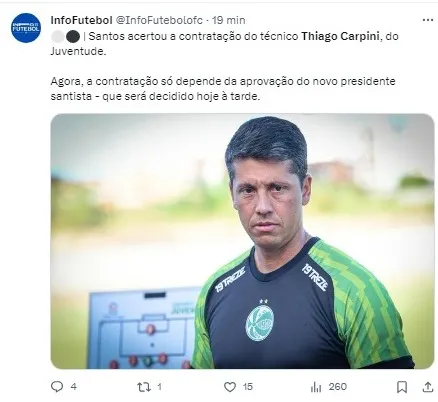 A especulação vai além, indicando que Thiago Carpini já teria um acordo verbal com Ricardo Agostinho, um dos candidatos à presidência do Santos.