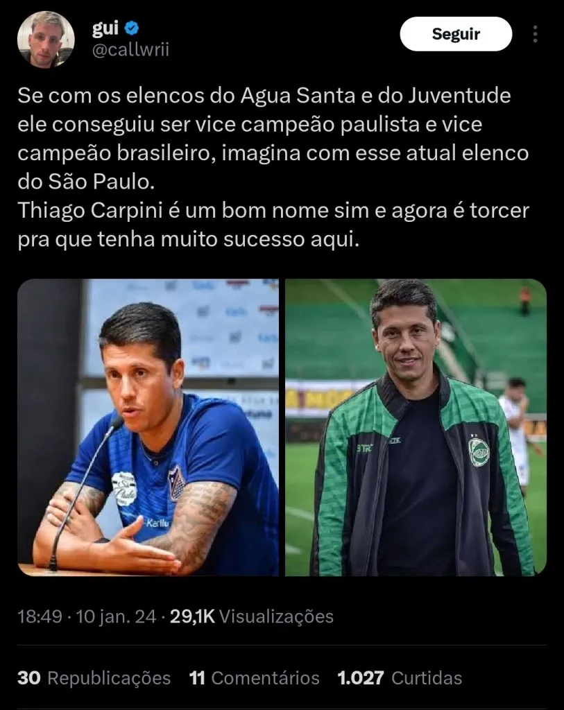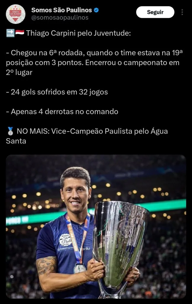 O treinador vem sendo um dos grandes destaques do futebol brasileiro nas últimas temporadas, e atraiu interesse da diretoria tricolor. Carpini demonstra interesse em assumir o cargo do clube, e não dificultou as negociações.