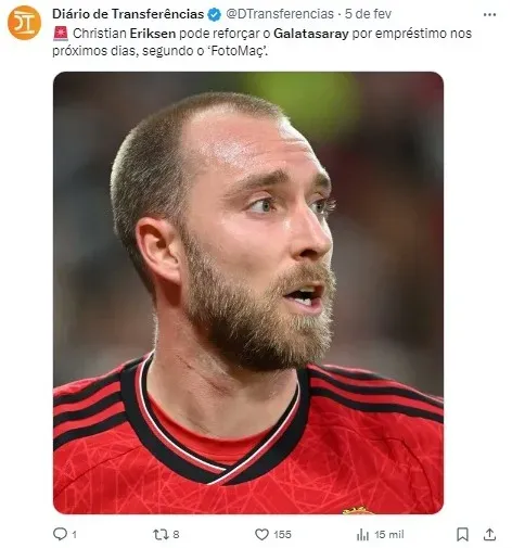 O meia dinamarquês Christian Eriksen, atualmente vestindo a camisa do Manchester United, pode estar próximo de uma mudança para o futebol turco.