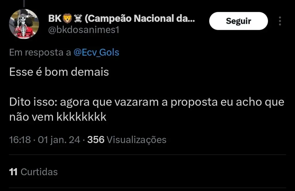 A fonte reporta que o rubro negro enviou uma proposta de empréstimo pelo jogador, e demonstra certo otimismo. O São Paulo não irá dificultar, e deixará a decisão nas mãos do meio-campista.