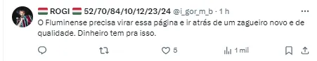O zagueiro é o plano A, B e C da diretoria, segundo o GE. “Sou muito amigo do Thiago, converso com ele sobre vários assuntos, não só sobre a vinda do Fluminense. No momento não temos nada, mas temos um enorme desejo para que ele volte para casa“, disse Mário Bittencourt.