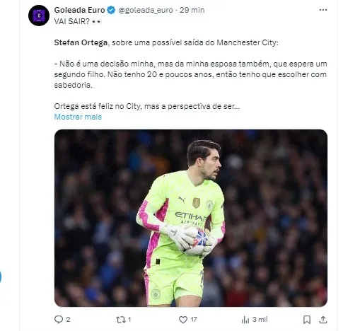 Em declarações ao “Manchester Evening News”, Ortega expressou sua preocupação com a iminente volta de Ederson, mencionando que a decisão sobre seu futuro no clube não depende apenas dele, mas também de sua família, especialmente com a chegada do segundo filho.