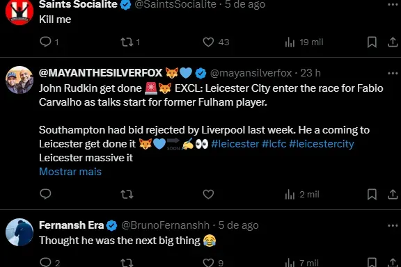 Agora, em destaque na pré-temporda do time de Anfiled, o jovem Fábio Carvalho é monitorado por dois clubes da Inglaterra e um da Alemanha. O Leicester acaba de se juntar à concorrência de RB Leipzig e Southampton.