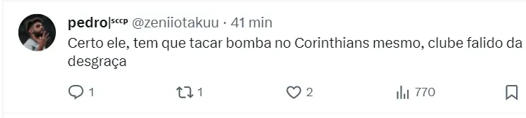 E justamente pelo fato de o Corinthians estar buscando jogadores na Argentina, o mandatário do Argentinos Jrs, Cristian Malaspina, detonou o clube paulista pelos atrasados pelo jogador enquanto procura por reforços argentinos.