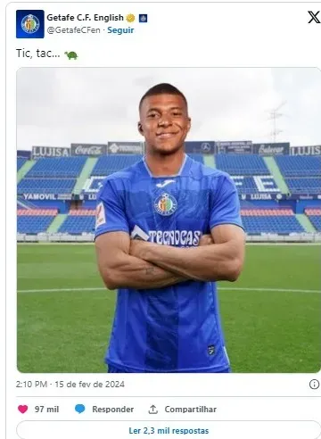 Apesar do provável destino de Mbappé ser o Real Madrid, o Getafe, também da capital espanhola, aproveitou a oportunidade para “anunciá-lo” como reforço.