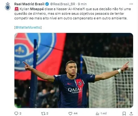 Mbappé sempre sonhou em jogar pelo Real Madrid, ídolos como Zinedine Zidane e Cristiano Ronaldo influenciaram sua paixão pelo clube merengue. De acordo com informações da ESPN, o astro sente que é o momento certo de dar um passo adiante em sua carreira, e o Real Madrid parece ser o destino ideal para ele.