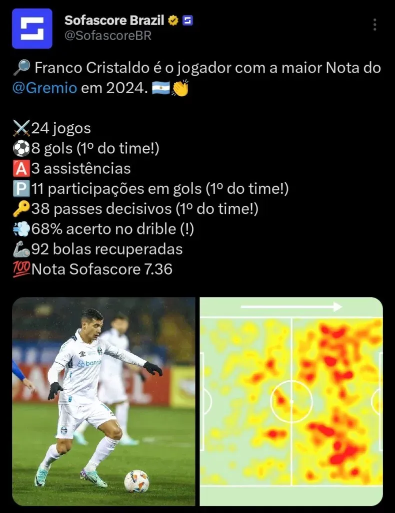 O meio-campista Franco Cristaldo é um dos jogadores que mais tem se destacado no Grêmio ao longo dos últimos meses.