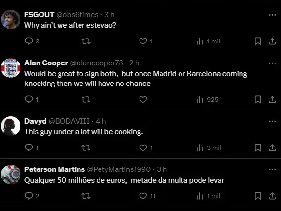 Em novembro do ano passado, o presidente Florentino Pérez aprovou a investida pelo jogador e demonstrou interesse em levá-lo para o Real Madrid, assim como fez com Endrick.