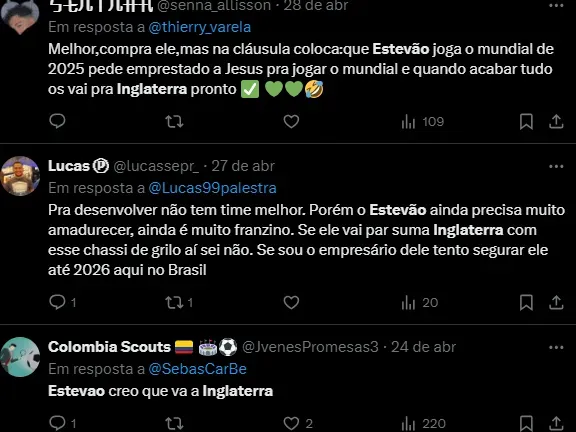 Estêvão está com cada vez mais moral na Academia de Futebol e desperta o interesse do futebol inglês. O Liverpool já perdeu muitos brasileiros para adversários em solo europeu: Vini Jr e Rodrydo são exemplos.