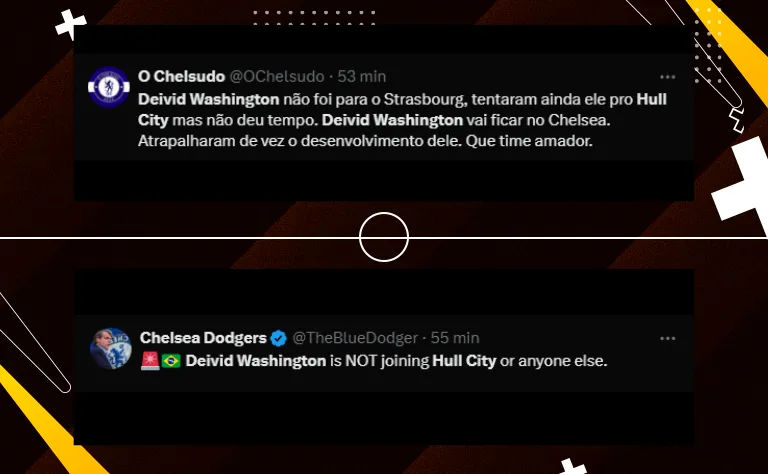 O gigante da Premier League pretendia emprestar mais um jovem que não vem tendo espaço no elenco. Trata-se de Deivid Washington, ex-Santos. O jogador ficou perto de ser cedido ao Hull City, mas o negócio não foi concluído a tempo do fim da janela. O atacante ficará no time sub-21 dos Blues.