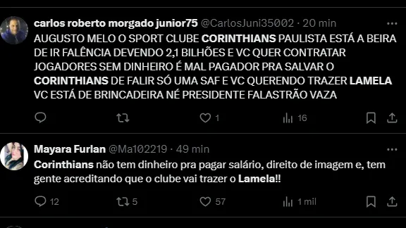 Os jornalistas Fábio Lázaro e Rafael Marson, ambos do Lance, confirmam que o Corinthians segue interessado em Lamela, que está em fim de contrato no Velho Continente.