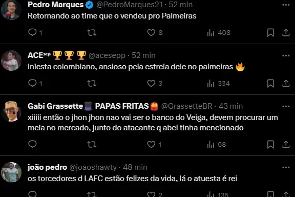 Atuesta tem vínculo com o Verdão válido até dezembro de 2026 e está sendo emprestado por uma temporada ao time da MLS, onde já conhece bem pelos três anos em que esteve por lá.