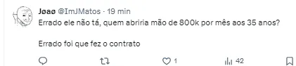 Uma fonte ligada à matéria do GE foi questionada sobre a negativa do jogador em ir ao Fortaleza e disse: “Não podemos obrigá-lo”. Caso não seja utilizado, o clube irá procurar outro destino para o jogador, que é considerado “caro” de se manter. Ainda não chegou propostas de outros clubes.