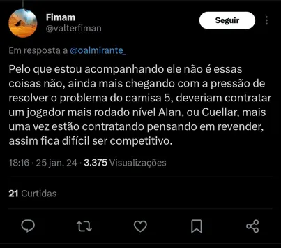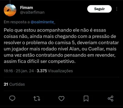 A expectativa é de que o negócio seja concluído o mais breve possível, e ele já passe a integrar o elenco Cruzmaltino. Existe um grande otimismo dos dirigentes que a negociação tenha um desfecho positivo.