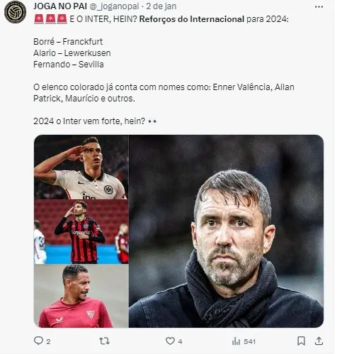 “Eu acho que o Inter está fazendo belas contratações, nomes importantes… Fez uma campanha de semifinal de Libertadores, e é um time que com essas contratações confirmadas, vem muito forte. O melhor mercado quem fez até aqui foi o Internacional”, pontuou Velloso.