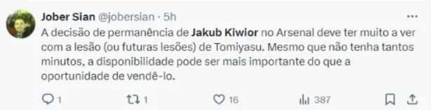 Você considera correto o Arsenal pensar em liberar o zagueiro Jakub Kiwior para o Villarreal?